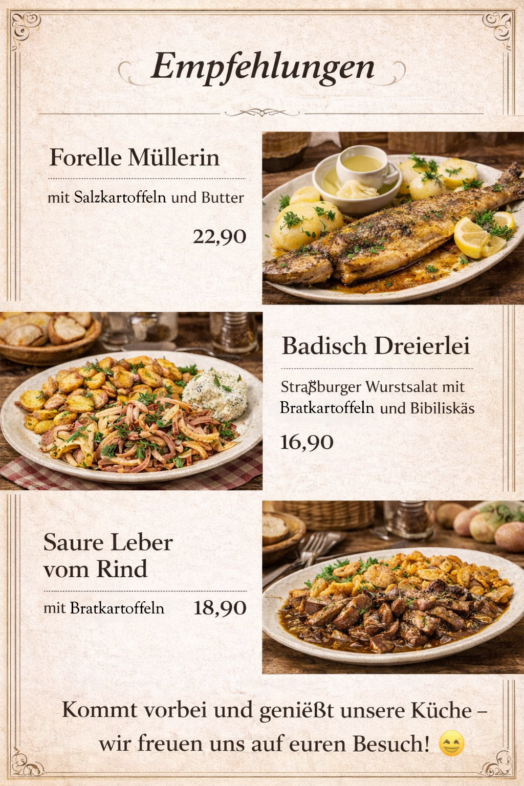 Kommt vorbei und genießt unsere Küche – wir freuen uns auf euren Besuch! 😊