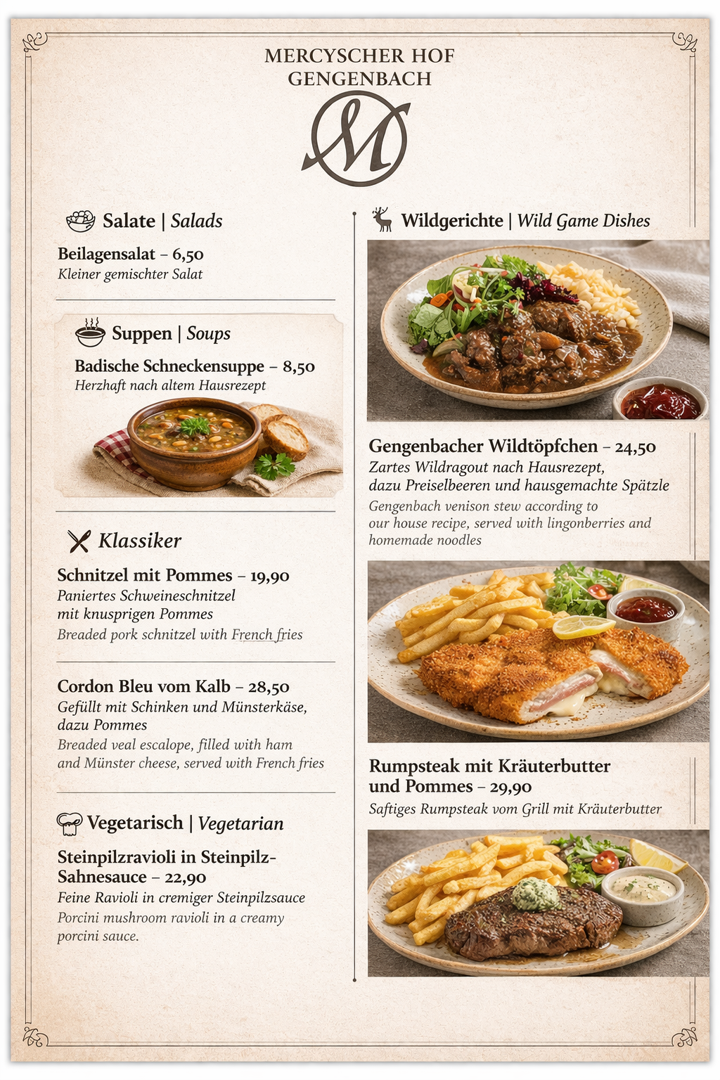 Ob für ein gemütliches Abendessen, ein festliches Menü oder einfach ein gutes Glas Wein – im Mercyschen Hof erleben Sie Gengenbacher Gastlichkeit von ihrer schönsten Seite.